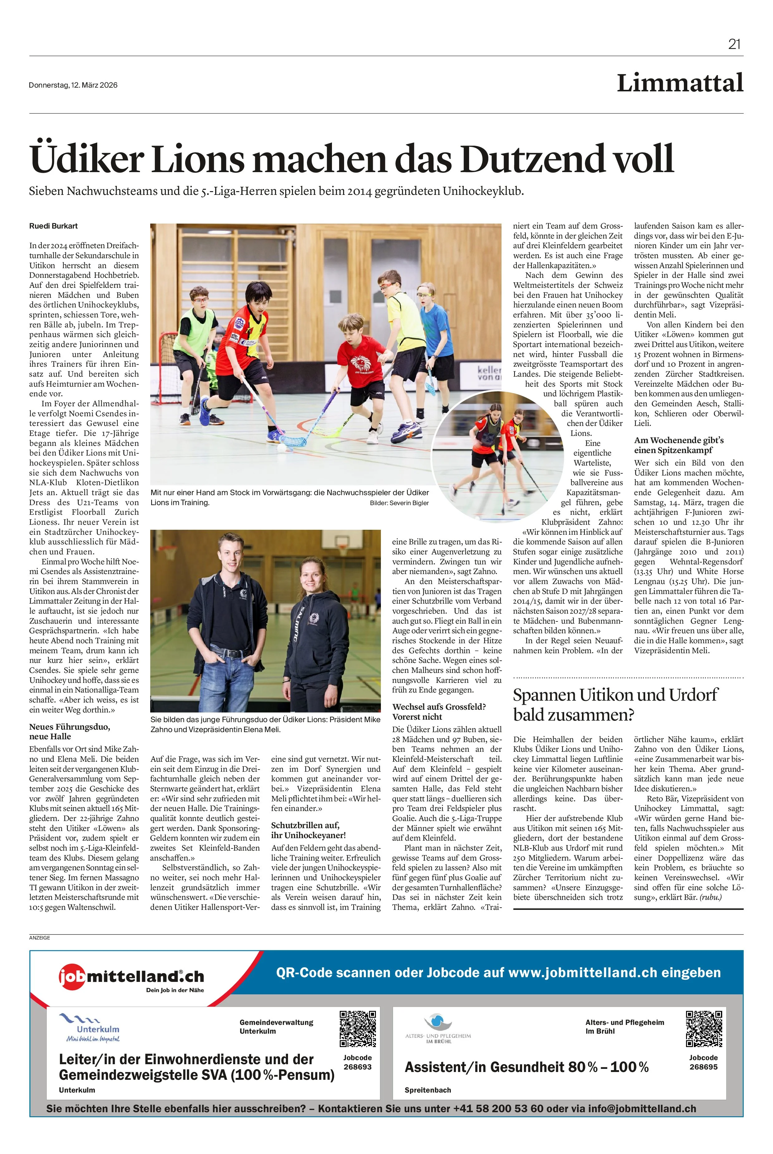 Mike Zahno: Das Training in den neuen Hallen ist cool. Wir trainieren im Sport-Zentrum von Uitikon, werden gesehen und können so Kinder und Jugendliche für den Sport gewinnen.